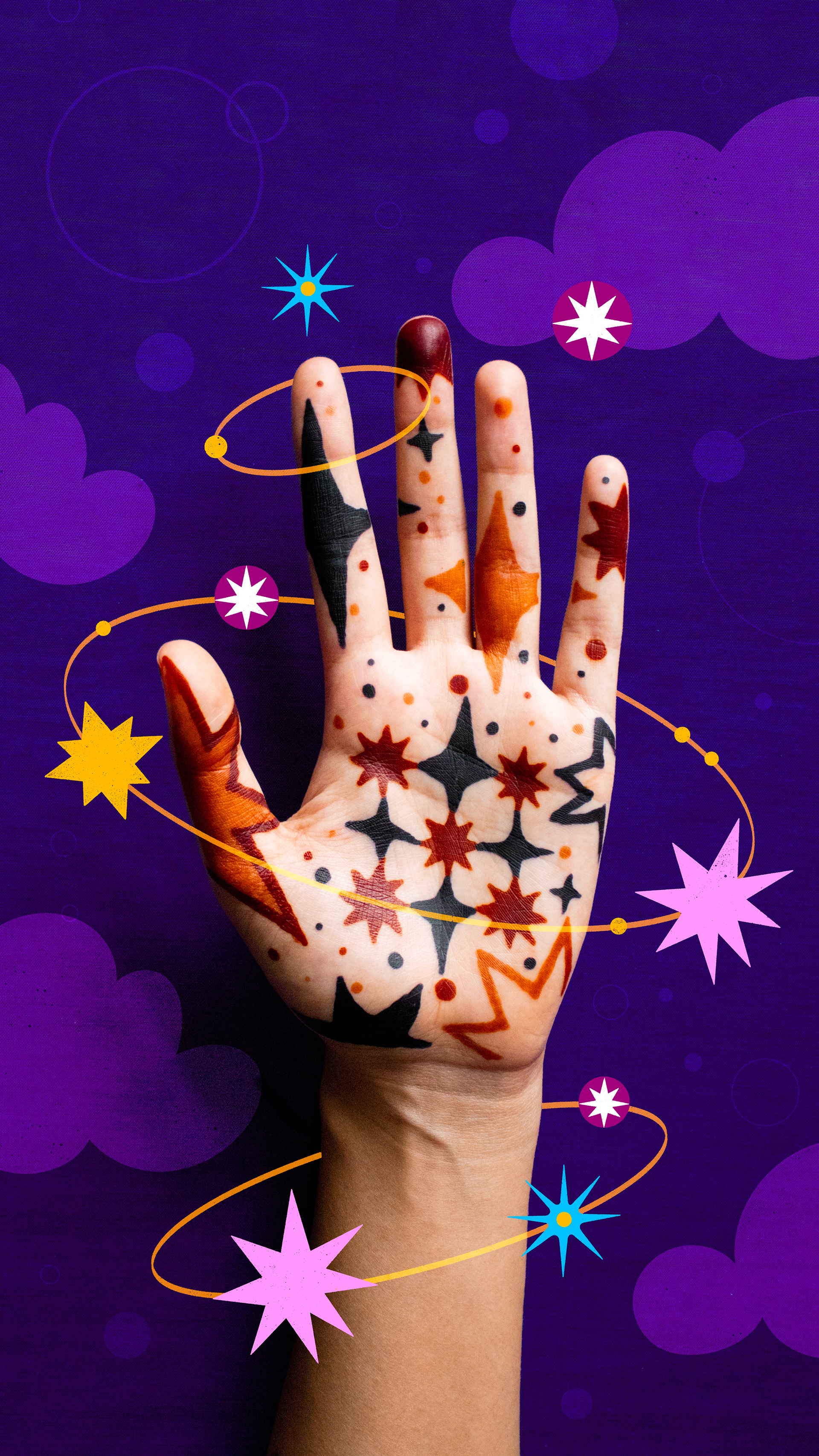 A few months ago, Ruqaiyyah suggested we collaborate on a henna project, one where we could combine both our styles and mediums to create something that was so unapologetically us. After a few discussions regarding inspiration and ideas, the ever so talented henna artist whipped up a design which magically encompassed our love for all things that shimmer and shine!